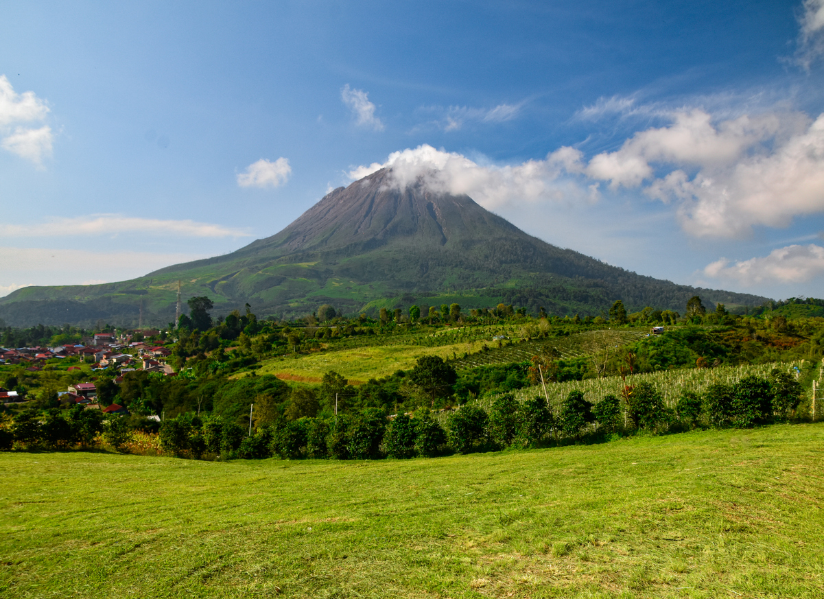 Sumatra besitzt über 30 aktive Vulkane. Einer der bekanntesten ist der Mount Kerinci im Westen – mit 3.805 Metern der höchste Vulkan Indonesiens. Der Aufstieg ist anspruchsvoll, aber lohnend: Oben belohnt ein grenzenloser Blick über die Dschungelwipfel und Wolkenmeere. Rund um das Kerinci-Seblat-Naturschutzgebiet laden Teeplantagen und kühle Bergluft zum Verweilen ein.